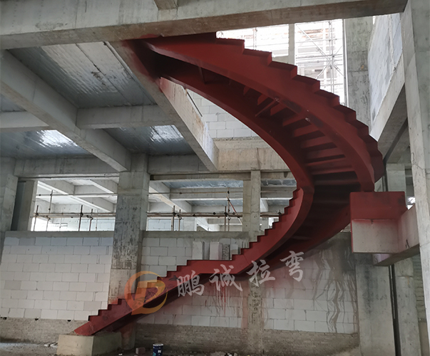 板式旋转楼梯是由内、外空腹曲梁、底部封板、踏步板和栏杆等组成。